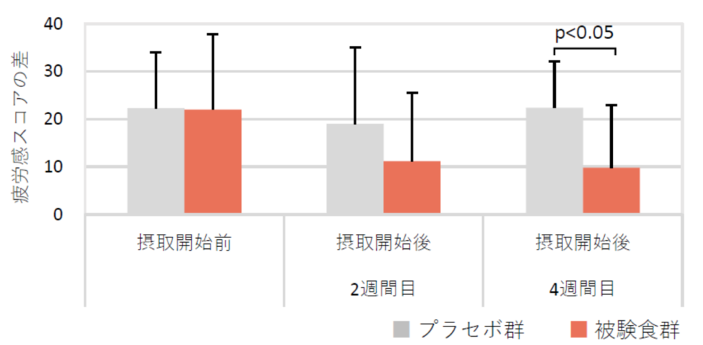 備前化成では1日200mgの「発酵SACエキス末」(SACとして2mg)摂取によって、精神的および身体的疲労感が軽減されることを臨床試験で明らかにしており【グラフ】、「注意力や思考力を要する作業に伴う一時的な精神的疲労感を軽減」「日常生活における一時的な身体的疲労感を軽減」などのヘルスクレームで機能性表示の届出受理実績を重ねている。