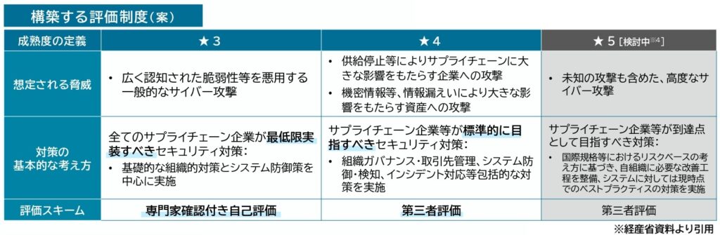 満たすべき各企業のセキュリティ対策を提示しつつその対策状況を可視化する仕組みで、具体的には基準に適合する対策ができていることを星の数でチェック・認定し、発注者側企業が取引先企業に対して必要な星数を設定し要請する形だ。