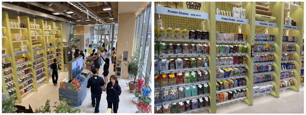 「 Olive Better 」は、明洞にほど近いオフィス街にあり、平日の朝にも関わらず多くのビジネスマンが訪れていた。店員の話によると、購買層は10~30代の女性が中心だが、中年男性客も多いとのこと。商品は若年層を意識した洗練されたデザインのパッケージや一般食品のような手に取りやすいカジュアルな見た目のモノが多い。特にプロテインシェイクやオリーブオイルとレモンジュースを組み合わせた商品などが売れ行きのようだ。